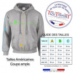 Sweat à capuche gris chiné, poche ventrale coupe homme 50% coton / 50% polyester.